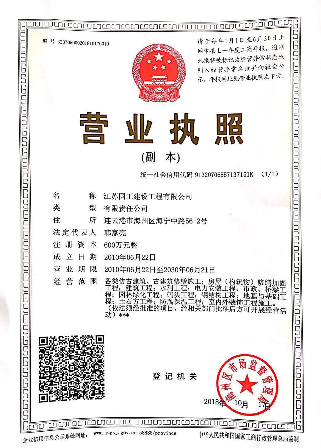 江蘇固工建設(shè)工程有限公司于2010年06月成立,擁有特種工程(結(jié)構(gòu)補(bǔ)強(qiáng))專業(yè)承包資質(zhì)和古建筑專業(yè)承包三級資質(zhì),公司注冊資金600萬元,主營業(yè)務(wù)是以建筑(構(gòu)筑物)抗震加固工程、防水工程、仿古建筑施工以及古建筑修繕為主的建筑施工企業(yè),另公司投資100余萬元發(fā)展混凝土噴漿為輔助產(chǎn)業(yè),擁有與之相匹配的專業(yè)技術(shù)人員和機(jī)械設(shè)備。
